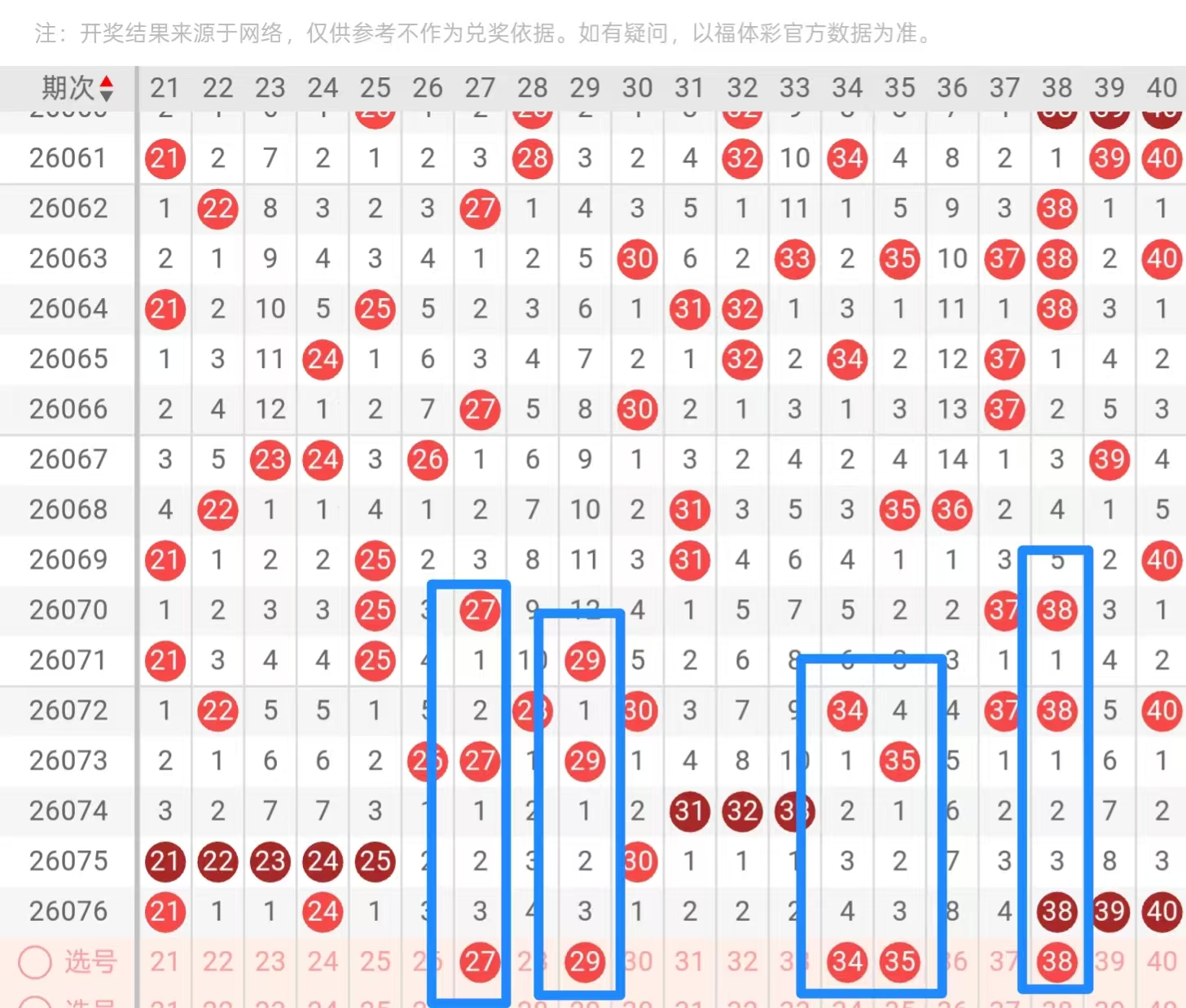 二区21—40: 2字头在开出五连号之后,上期只补了两个重码,那么本期对立的面21 24有一个走三重的概率比较大,那么也尽可能去考虑21即可,然后24~38的跨度比较大,这里面如果去考虑号码回补的情况,那么对子带间隔回补三头2字头,这边只考虑等期的下落即可,尤其是3字头,本期作为防守对子带间隔的情况会有所好转大家也可以打一个30 35的组合。