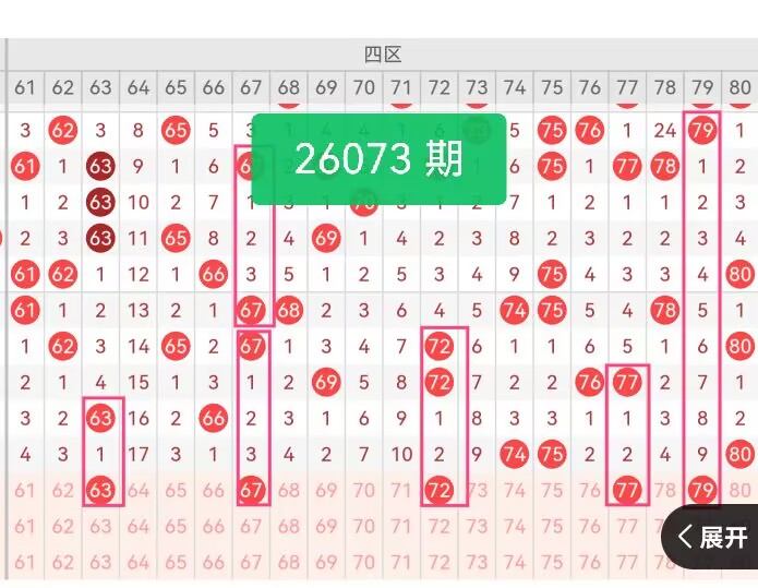 上期第四区间开奖5个号码,本期可能会稳定开出。64:近30期开出频次偏低,属冷号,上期未出,具备反弹潜力,与上期热号62、70-73形成间隔,避免后段扎堆;68:近期走势平稳,近10期无连续热出,属中频号码,上期未出,填补四区中段空缺;74:上期未出,属热号但无极端热态,适合作为四区核心补充,提升区间热号占比;77:近30期开出频次中等,属温号,上期未出,与冷号74形成区间内冷热平衡;79:近10期热度适中,上期未出,靠近四区边界,与74、77形成均衡分布,增强反弹有效性。