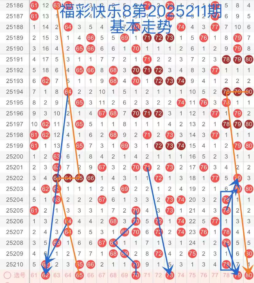 25211期福彩快乐8,走势综合分析(本期一胆参考51)