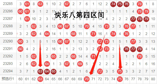 快乐八第四区间上期开出了5码落位,一个三连码和一个同路尾。整体号码是很规整的,75上期是我们重点提到的号码,她作为整个7字头重要的连接号码,果然没有走冷太久就开号了,那么本期可以看一个重码形态,为后期的号码连接打下更好的基础。和75形成呼应的是中段的70号球,70号球也是一个重要的走势连接号码,她本期有希望随着75号球落位之后跟随落号,大家可以把这个号码作为一个防守关注号码,本期70号球的走势线不是特别多,看到的人可能比较少,是一个比较不错的做号机会。63.64.65这个三连码的底下需要考虑一个重码,从走势线上看63是比较有优势的号码球,同时比较需要关注的是62和64在近几期都有重码形态,那么她们之间的夹号63是否也有重号的走势趋势。