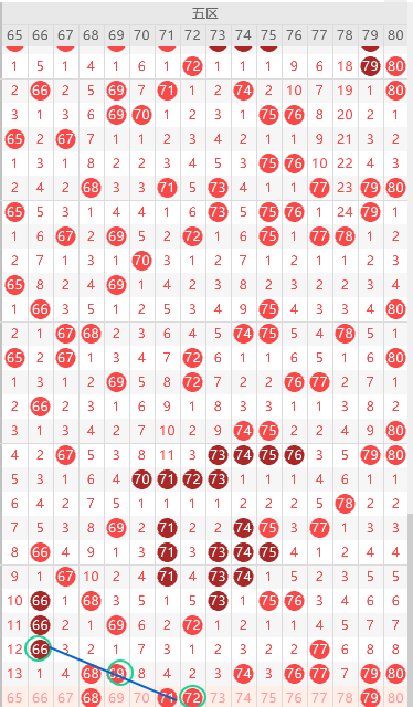 边号67 70 73 75 78出一码,重号68 74 69 79出一,形态71 72是斜连号,上图已勾画,上期讲等五区走热直接跟,本期五区看好走热,重号出多期,本期看好有重号,优先69 74 68,不看好68可以试试78,78机会挺大,本期有连号,看号71 72同出,夹子号75 78二出一,优先78,6尾最热接着跟66 76二出一,优先66,7开头走热本期7开头看好出2-3码,结论关注五码66 69 71 72 78,一胆69三胆69 72 78