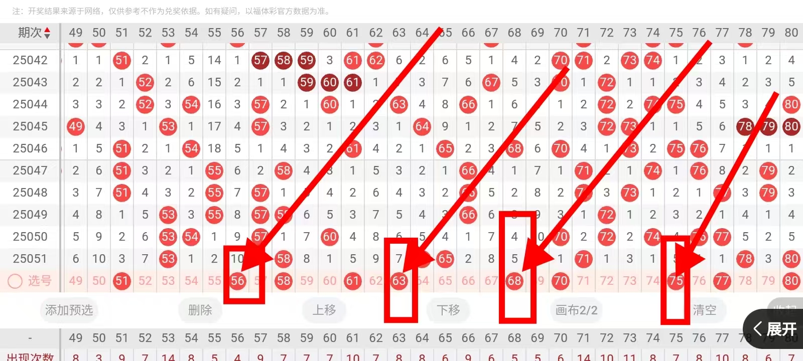 上升趋势,小尾数号码,奇数号码,质数号码,1路数号码和2路数号码,72 75