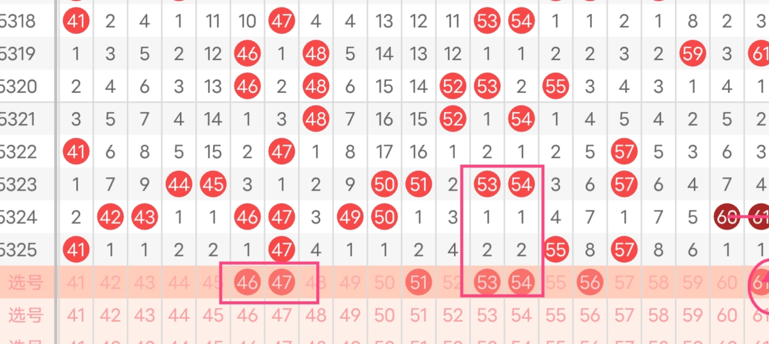 三区:第三区间4码 四头位置41号和47号坐重,五头位置55 和双重空一57号,本期四头位置46 47考虑一码下落,重点区间本期应该在第三区间五头位置,本期考虑回补3到4码,走势回补51 53 54 56 四码中间较强 三区胆码 46 54