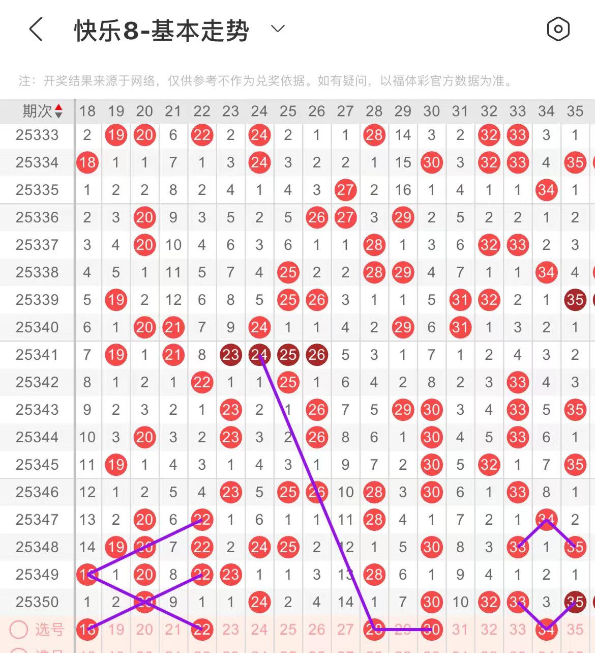 21-30区:本区间上期开出了两个号码,从号码走势图上看,该区现属于温热区,出号个数在三个号码左右,有出号走势的号码有22号,回首掏斜连出号走势,28号,斜连出号走势,防28.30同出。