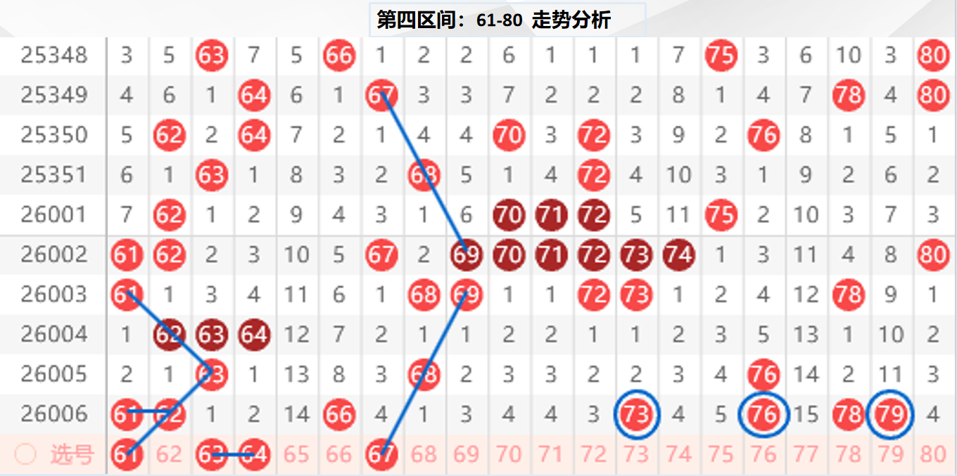 四区分析:【61-80】(走势图标注号码非小黄车大底,请谨慎参考,具体思路将在直播间分享讨论)