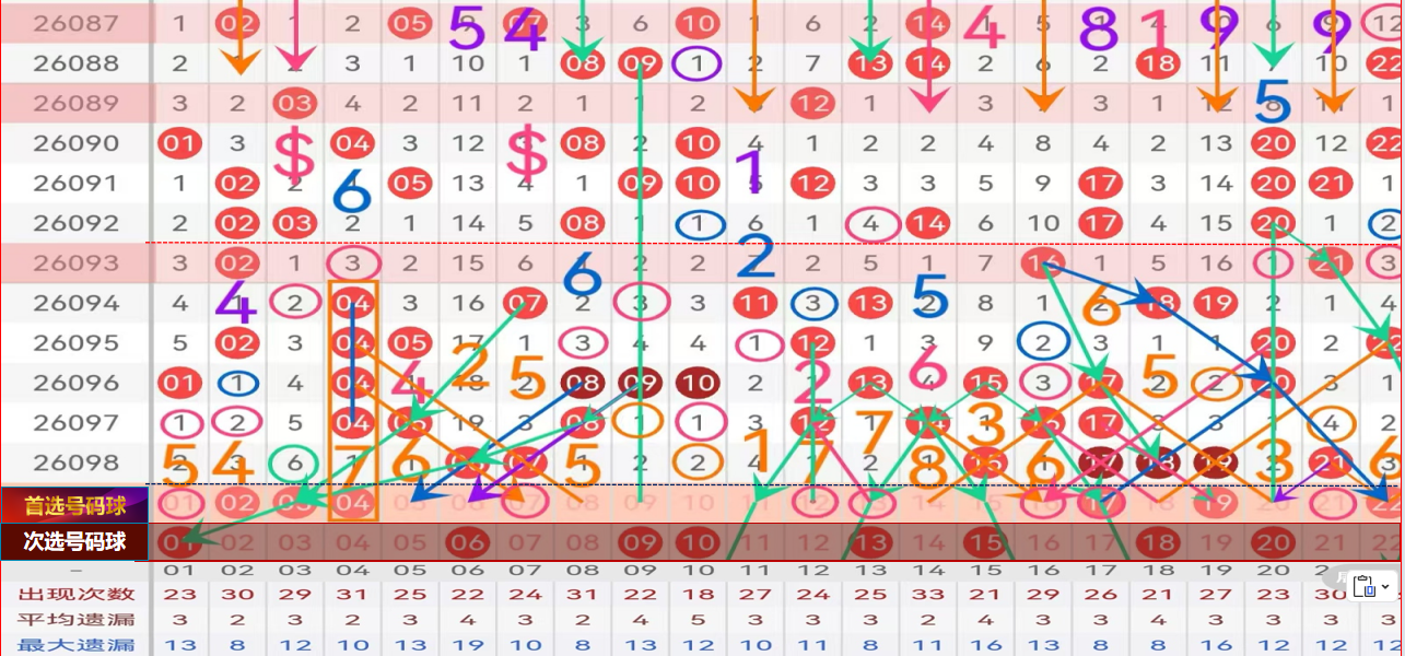 二区间上期开出了6个号码球,热态开出;端部21走重小防,重点关注夹心码22的10期值分边,第七次走遗漏3点位,12期值遗漏回补段;2字头上期开出4个孤码,21 23 26 29,本期四择一走重,根据走重属性推荐21,其次是26;孤码26这里主看分边25的遗漏对称形态复制点位;孤码29这里主看分边28,做22 25 28的同路防守组合,大遗漏边码26 28二择一推荐28的遗漏值回补码;三斜连的33,小数据,高分边属性码,可带大遗漏的33做连号主防;尾部38 40本期可重点关注或二择一根据组合拿号;
