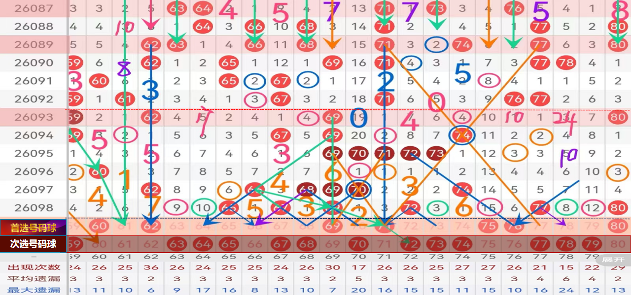 四区 间给到主做号码球:62 69 71 75 76 80;防守号码:61 66;
