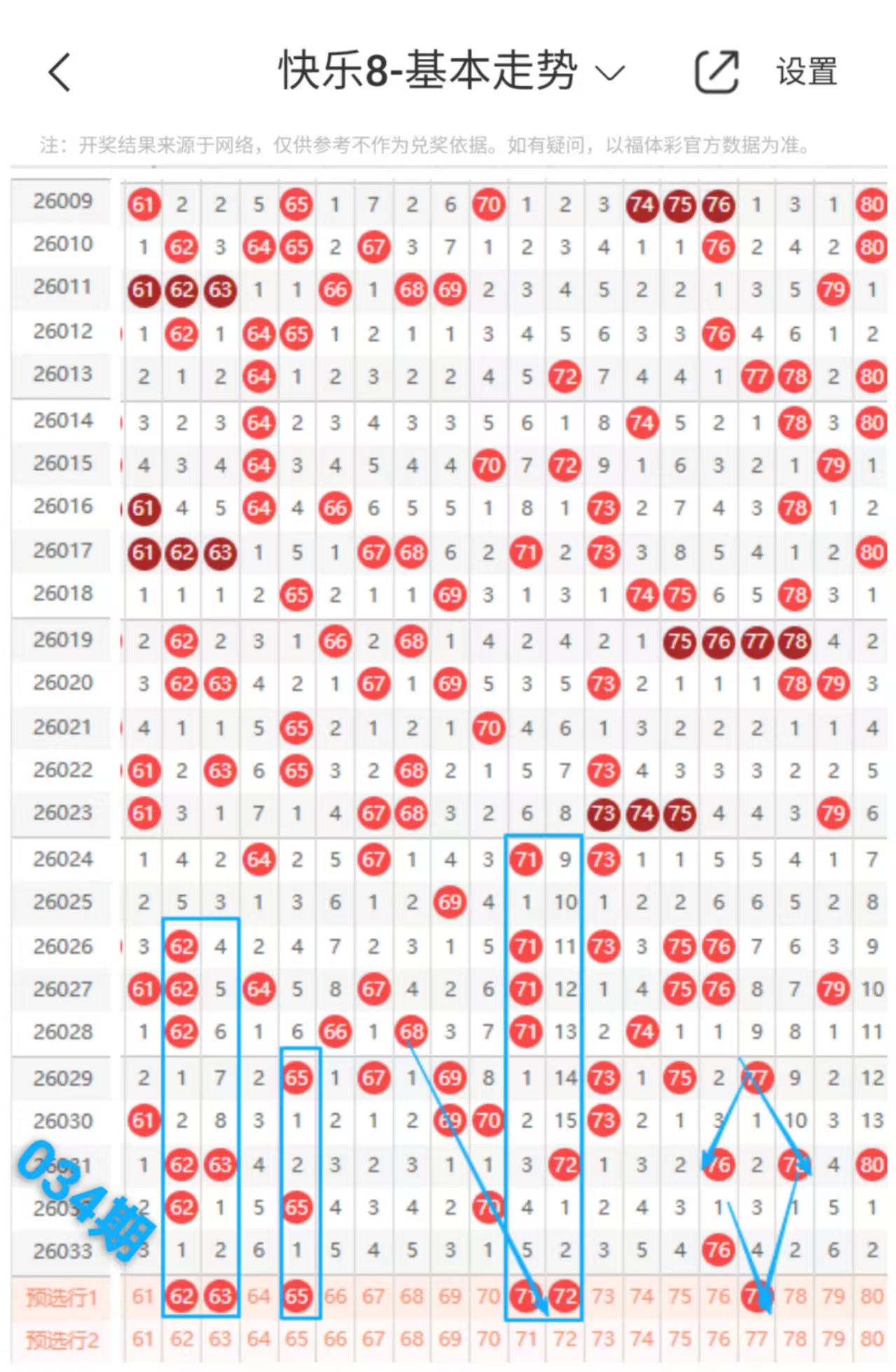 快乐八034期走势分析(上期会员中选二和一组选五复式+继续跟上吃肉)