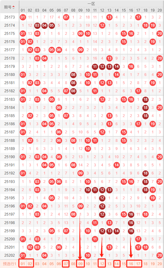 一区:最近一区10期出号情况为:8 7 3 5 6 3 7 4 6 4,总出号情况为52个,平均出号5.2个,本期推荐一区号码回补推荐出号为:01 02 07 09 12 14 16 17。重点关注:01 02 07 09 12 16 17。