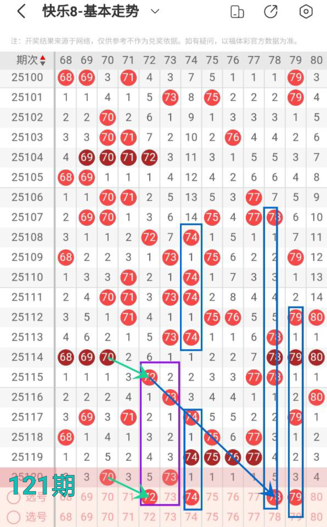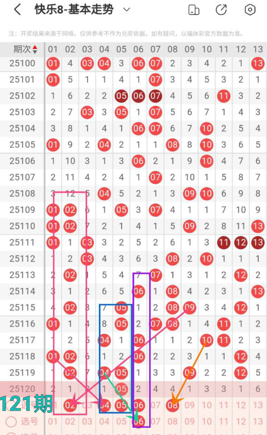 快乐八121期号码走势分析(本期机会不错 继续跟上吃肉)