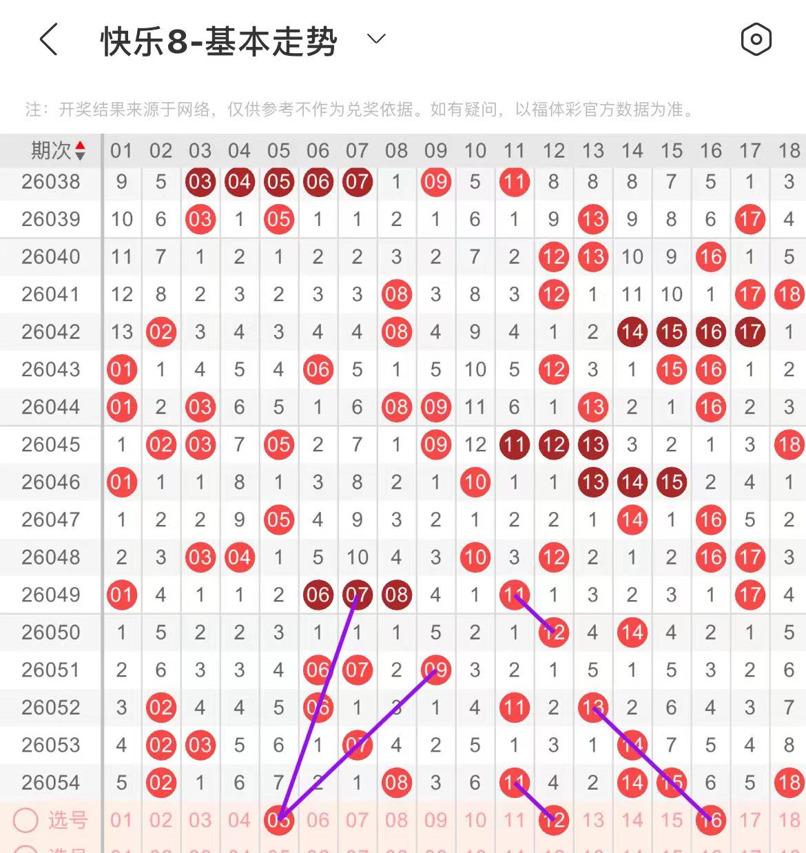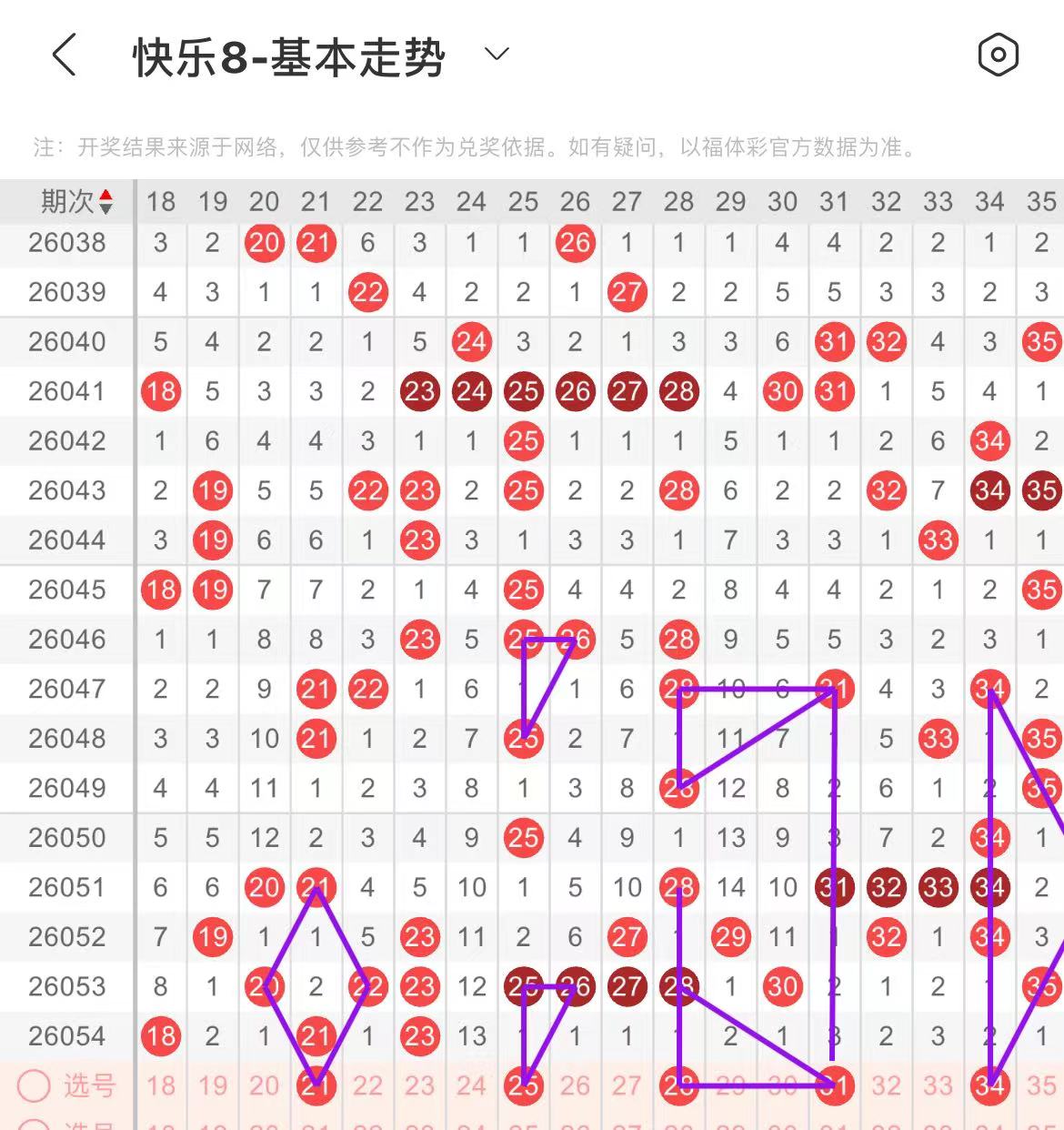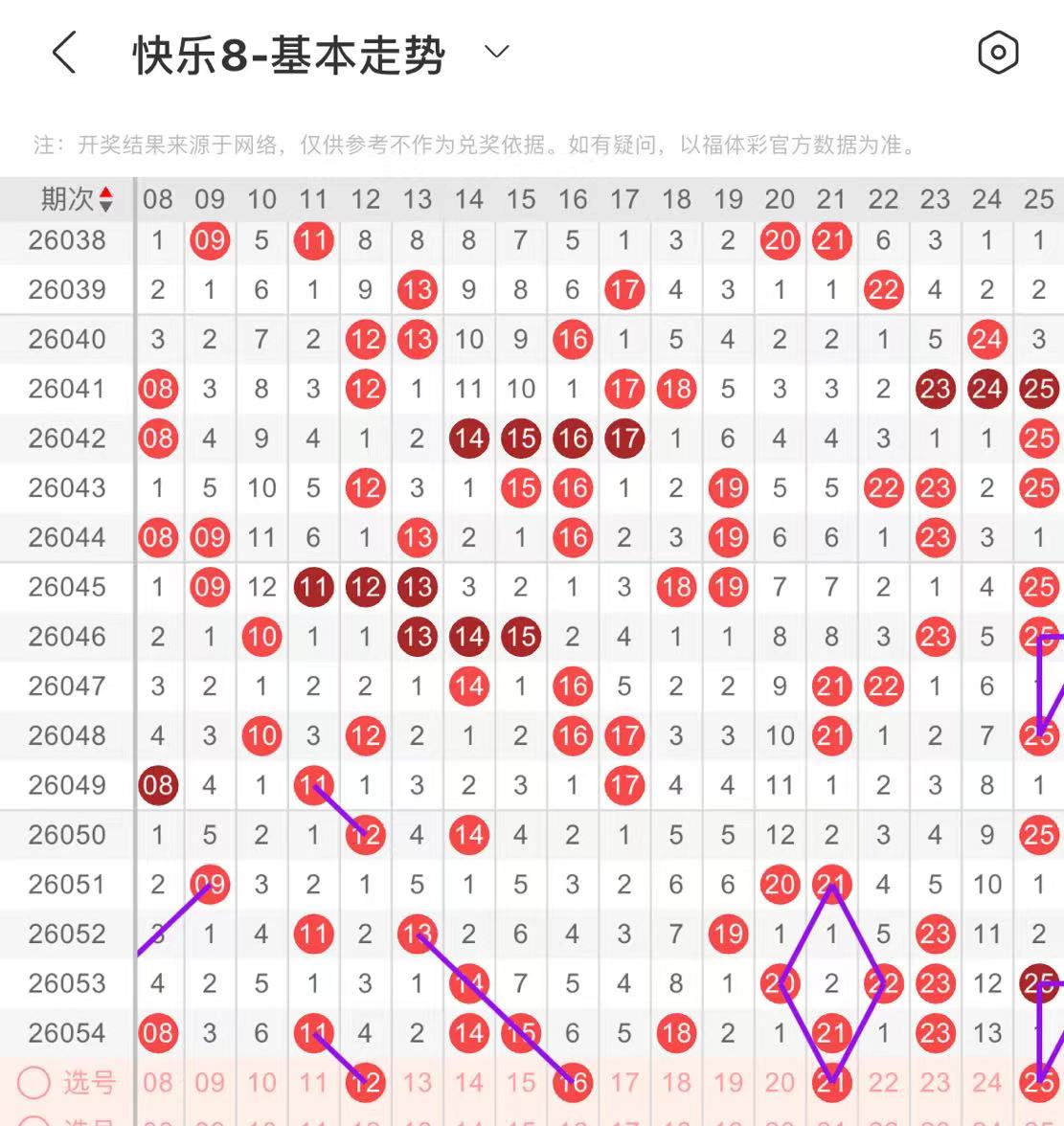 11-20区:本区间上期开出了四个号码,从号码走势图上看,该区号码走势有走热的趋势,本期出号个数在两三个号码左右,有出号走势的号码有12号,做为边号开出,16号,四斜连出号走势。