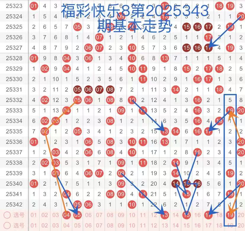 25343期福彩快乐8,走势综合分析(本期一胆参考17)