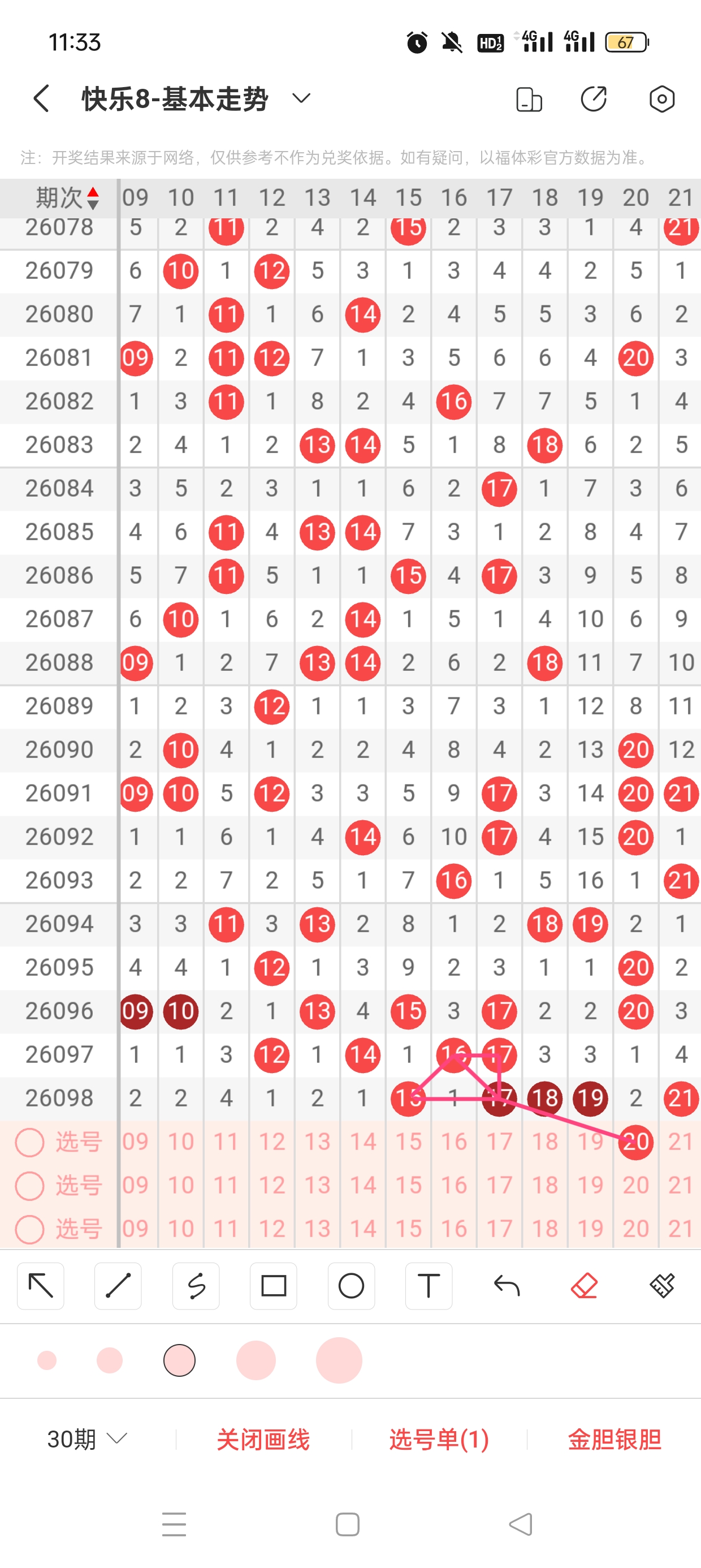 6、分区法:快乐8共分为4个区,一区:1-20,二区:21-40,三区:41-60,四区:61-80。