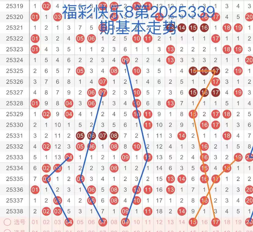 25339期福彩快乐8,走势综合分析(本期一胆参考07)