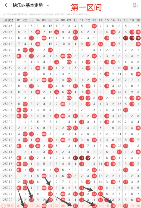 以上是我对本期快乐8(1-4)个区间的分析与思路。