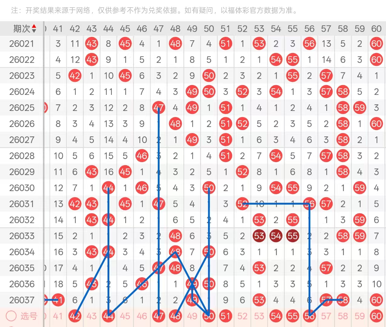三区:三区间上期开出了六码,四字头头部位置开出了18期遗漏下落的41,以及尾部位置八期遗漏做重的49,中部位置处于放空状态,本期可考虑43,46两码空一回补做一码即可,优先关注46的下落,其次44的三期遗漏与尾部位置上面50的空一,空一在本期为同形态,可考虑一码即可做二选一,其次尾部位置49的双重分别48,50。五字头上期开出了53的孤码,以及尾部位置5758对子以及十期遗漏下落的60以孤码形态开出,本期可考虑两码孤码的座重,其次分边号码525459614码做一码即可,5758对子优先考虑分辨号码的开出,其次防守做重。