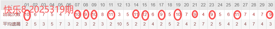 快乐8热号选择标准参考图(以30期为基准)所圈即为部分热码示意图
