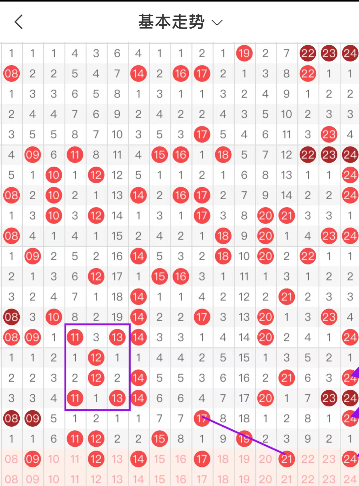11-20区:本区间上期开出了四个号码,从号码走势图上看,该区出号个数出现一期少,两三期多的走势,依此,本区出号个数应该在两三个号码左右。本期有出号走势的号码有12号,防走重的可能,14号,做为边号开出的可能,17号,形成一个菱形走势形态。