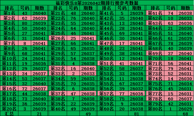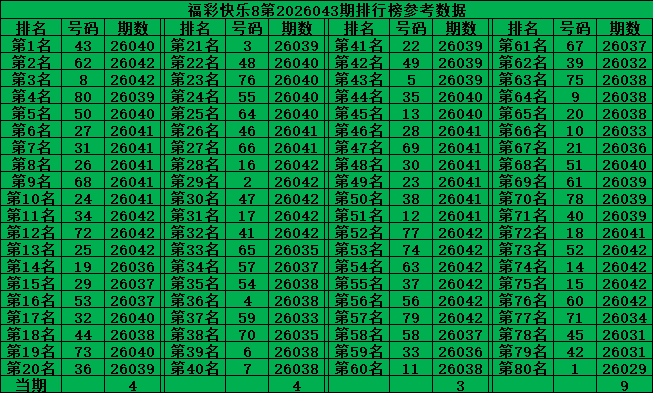 截至2026042期最大遗漏的号码是13期的01号,提取最近13期的数据做为2026043期的参考数据: