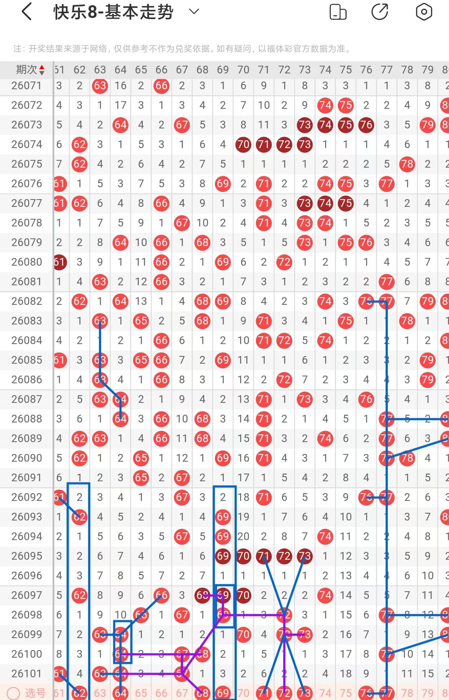 本期注意考虑一区间的稳定落号,二区间稳定落号,三区间的减少落号,四区间的增加落号,本期推荐关注07-10-13-16-19-22-26-30-33-38-42-43-46-57-59-64-68-72-76-77。