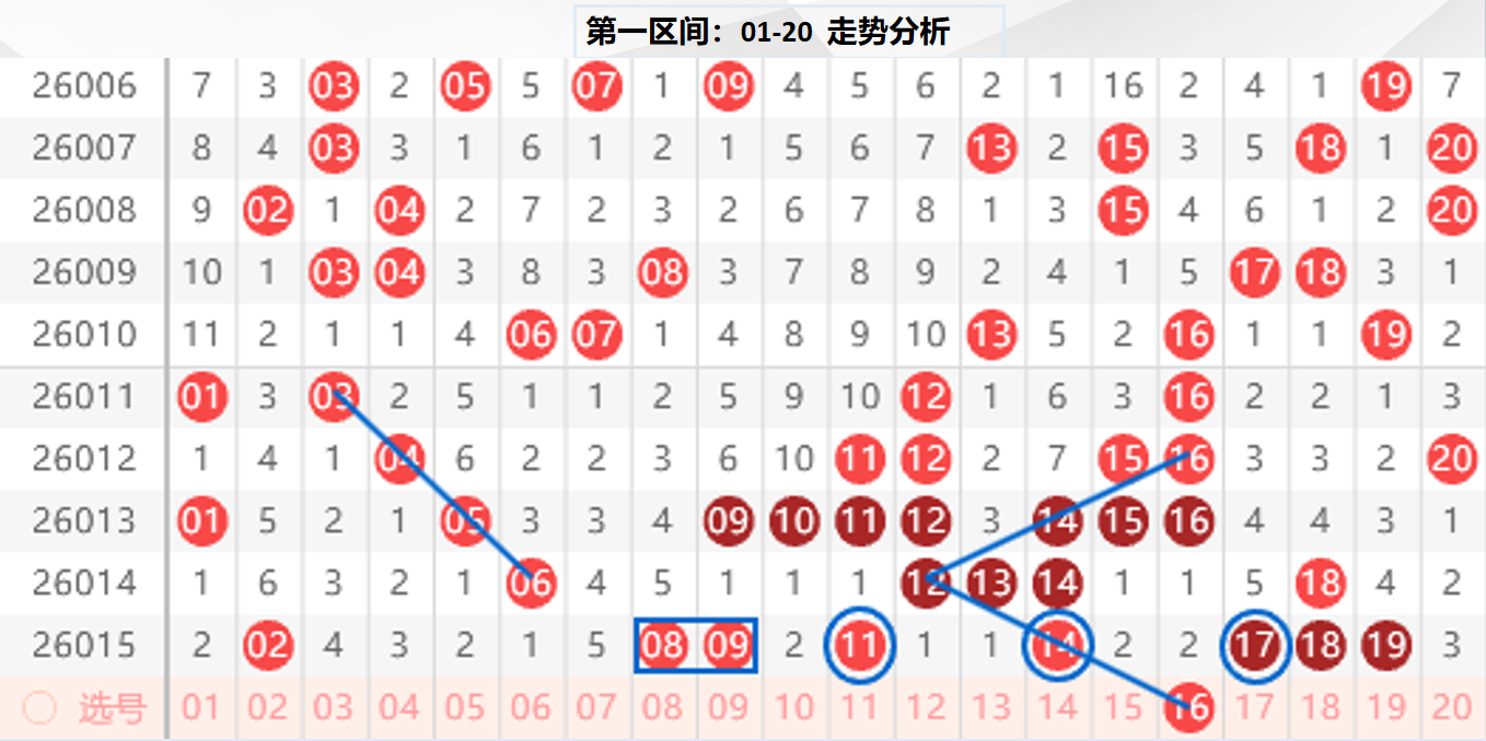 一区分析:【01-20】(走势图标注号码非小黄车大底,请谨慎参考,具体思路将在直播间分享讨论)