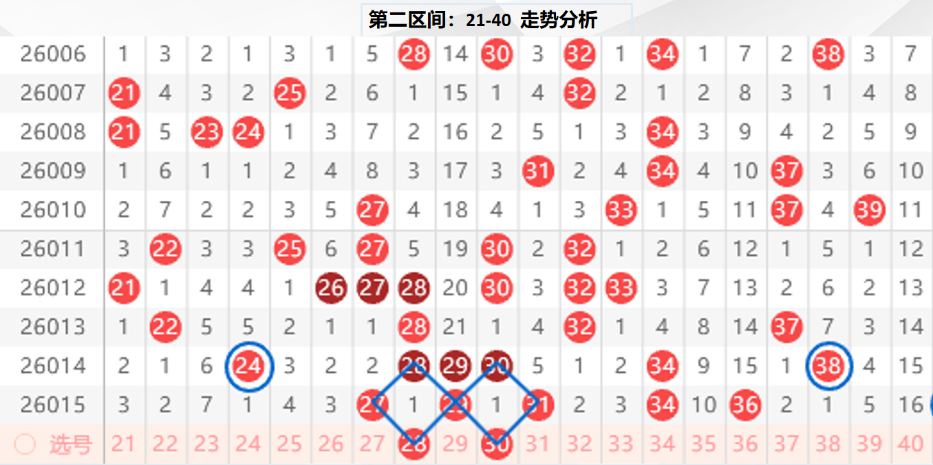 二区分析:【21-40】(走势图标注号码非小黄车大底,请谨慎参考,具体思路将在直播间分享讨论)