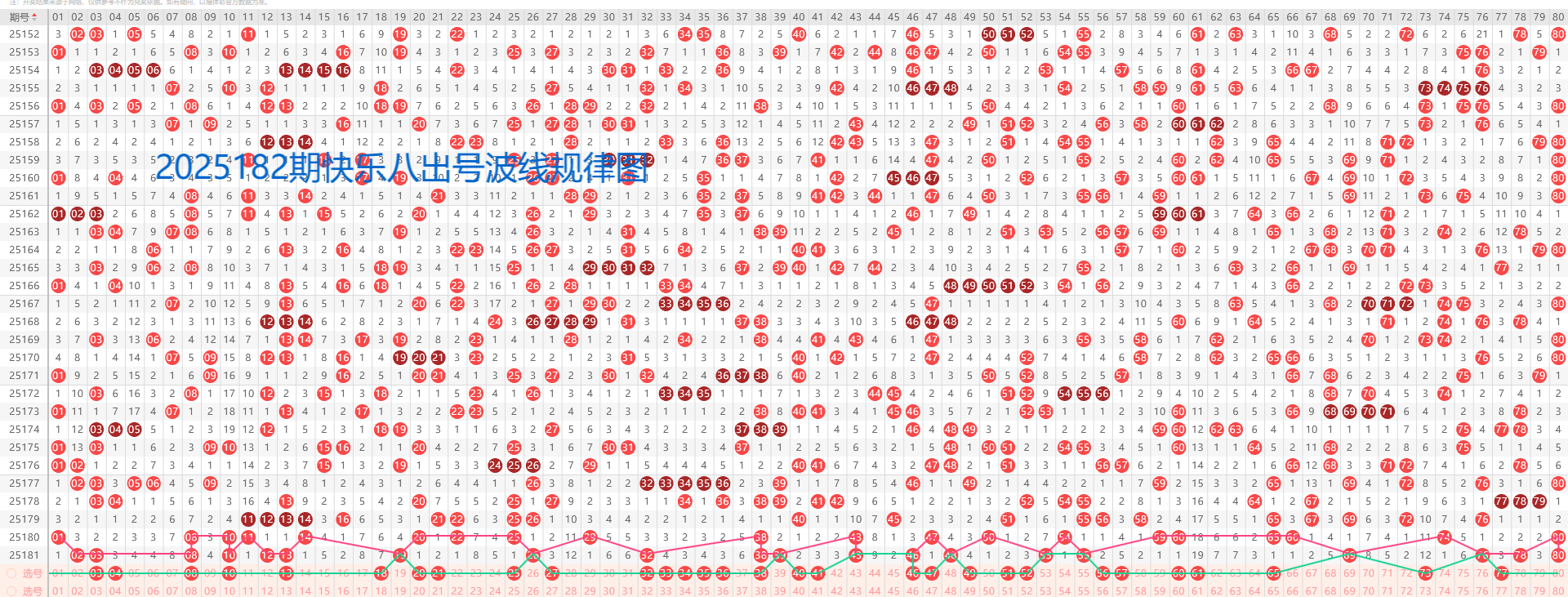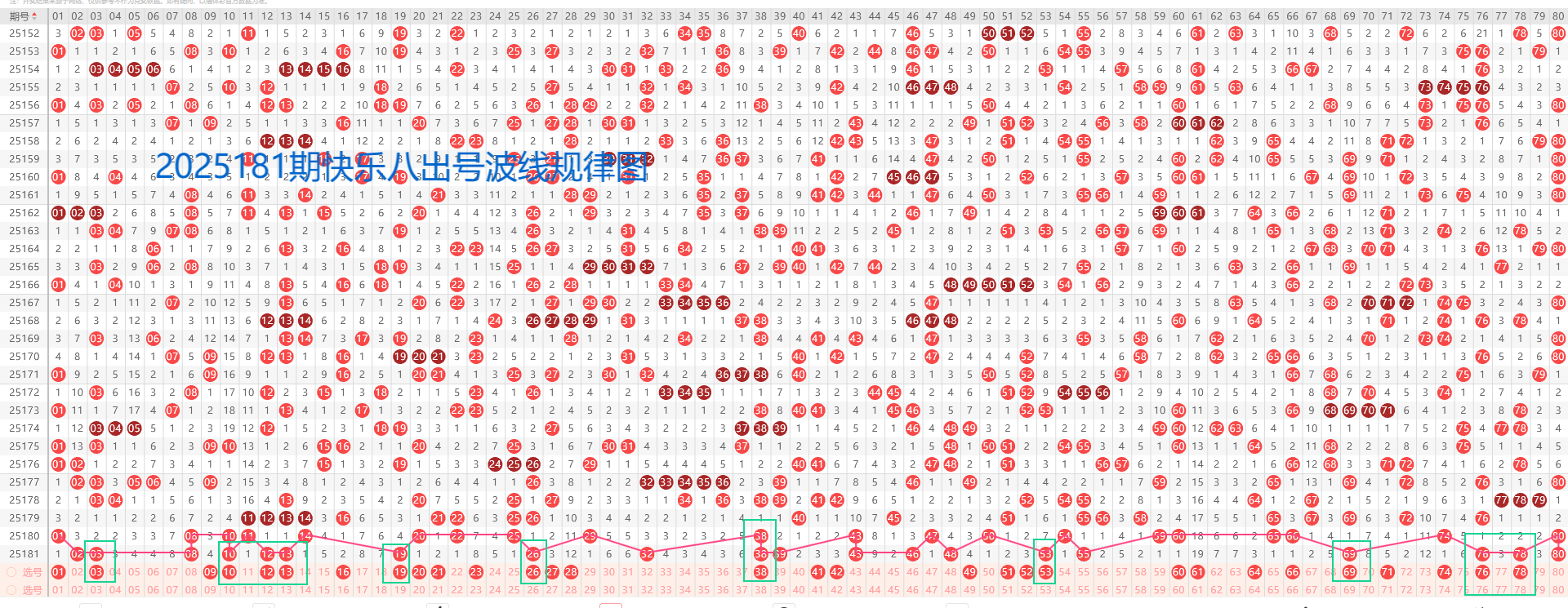 这快乐8有点小长,一般看不全,作者把关联号和上期拉对的号都划了出来,方便大家查看。