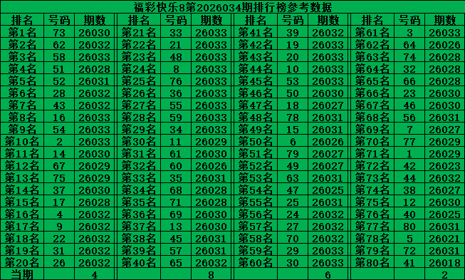 综上所述,福彩快乐8第2026034期推荐号码: