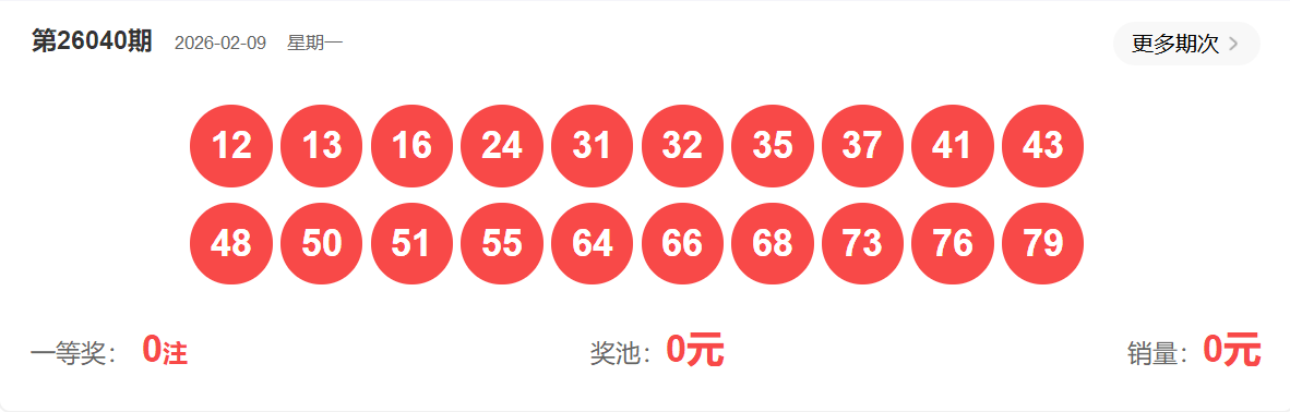 快乐8第040期开奖如下