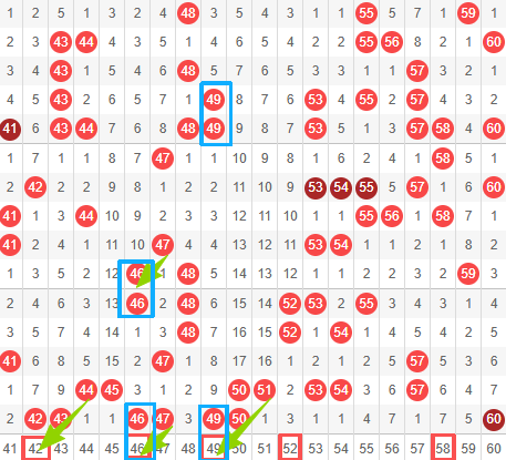 三区推荐号码为:42, 46, 49,52, 58.(上期本区命中42.46.50)