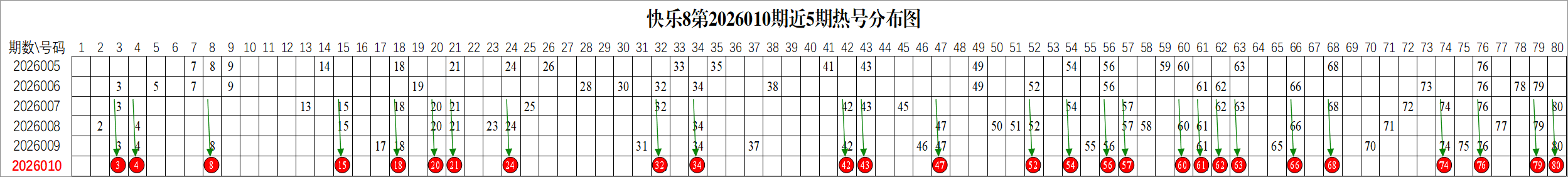 快乐8第2026010期多条件统计分析组号(上期对1组选8中5)