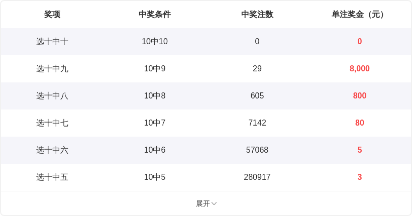快乐825257期开奖结果01 08 13 15 22 34 36 38 42 43 49 50 51 65 66 67 70 71 79 80,质合比6:14,十区比2:2:1:0:3:2:3:0:5:2,大小比12:8,奇偶比10:10。