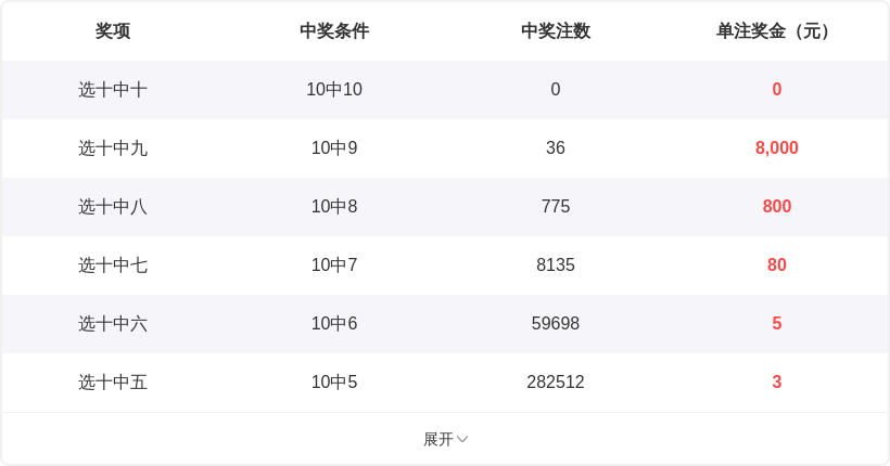 快乐8跨度分析:上期跨度为67,相比前期下降6个点,最近10期开出的跨度分别为67、73、77、73、71、76、69、78、62、76,近10期平均跨度为72.2,其中有6次高于平均跨度,上期跨度低于平均值。本期预计跨度值高于平均值,本期推荐跨度开在71~75左右。