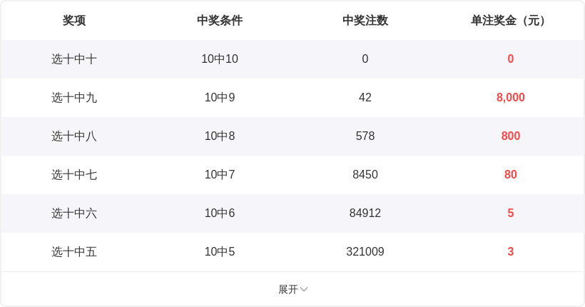 快乐8和值分析:上期开出和值852,相比前期增加18个点,增加显著,最近10期开出的和值分别为852、834、819、811、989、809、874、791、858、807,近10期平均和值为844.4,其中有4次大于平均和值,上期和值大于平均值。本期看好和值大于平均值,本期关注和值开在850~860之间。