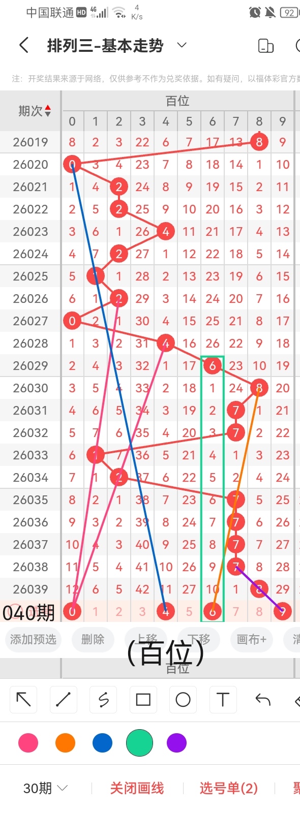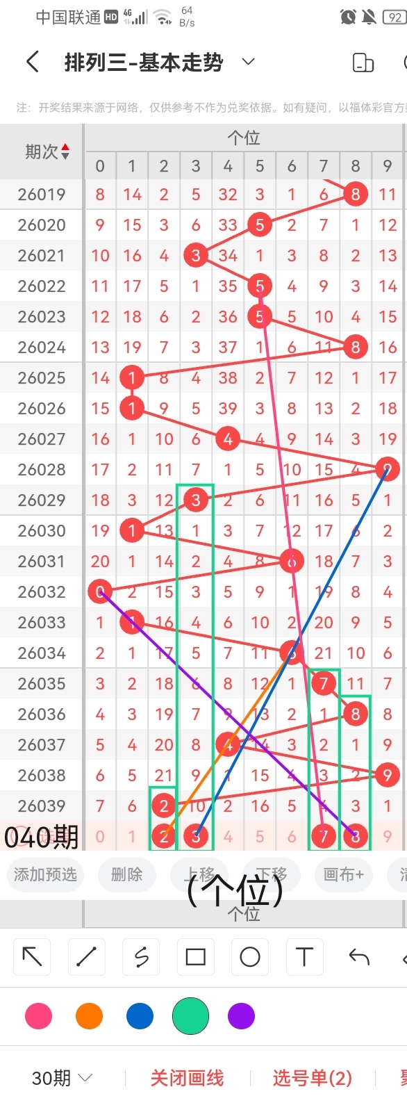 通过以上对上期的简单回顾,下面进入体彩排列三第2026040期(下面简称本期)的选号分析: