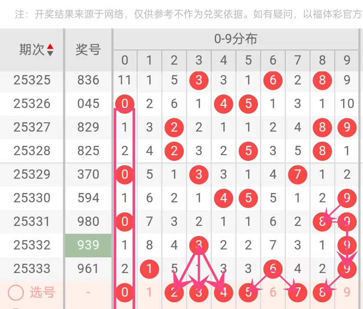 文章号码顺序不代表胆码推荐程度