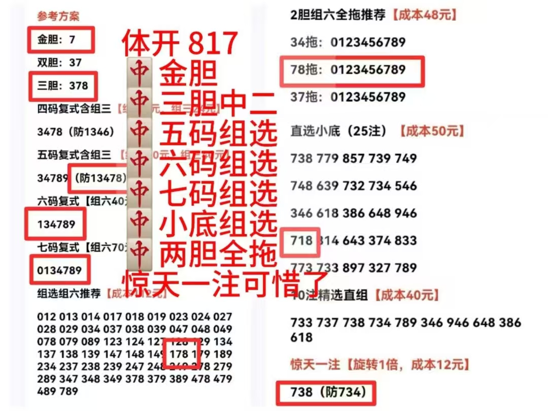 2025341期 命中组选,命中金胆,三胆中二,命中五码、六码、七码组选,命中两胆全拖,命中小底组选