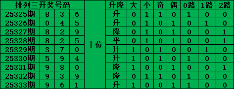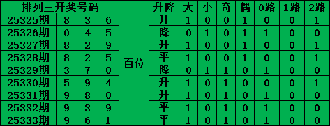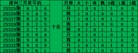 排列三是从0-9每期开出3个号码,截至2025333期三个位置最大遗漏的是25期个位的2号。