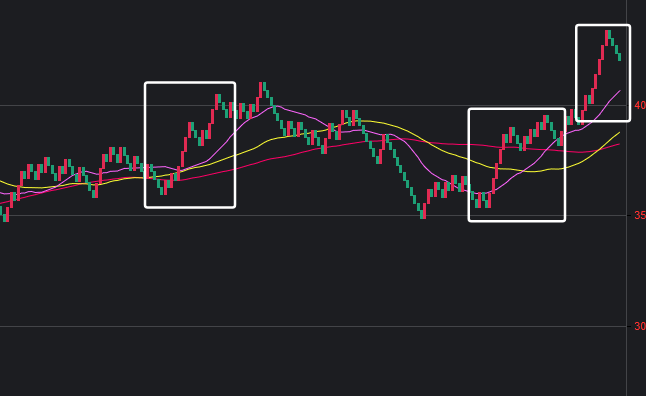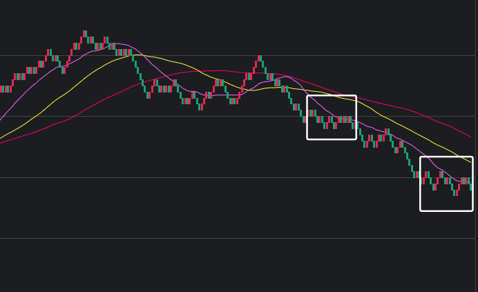 可以看到一些规律,在白框中,如果一致,那么接下来这些跨度也会出。