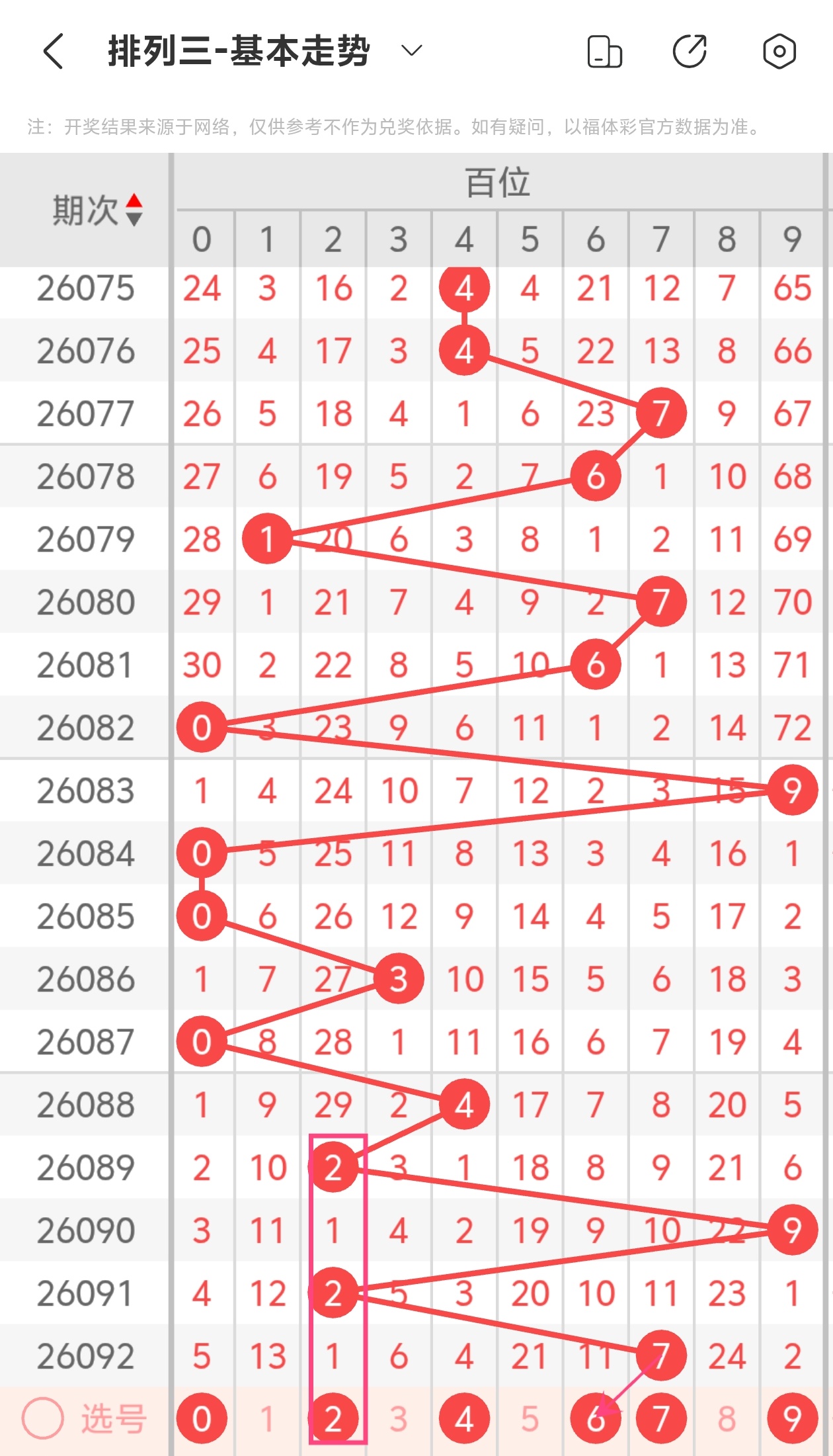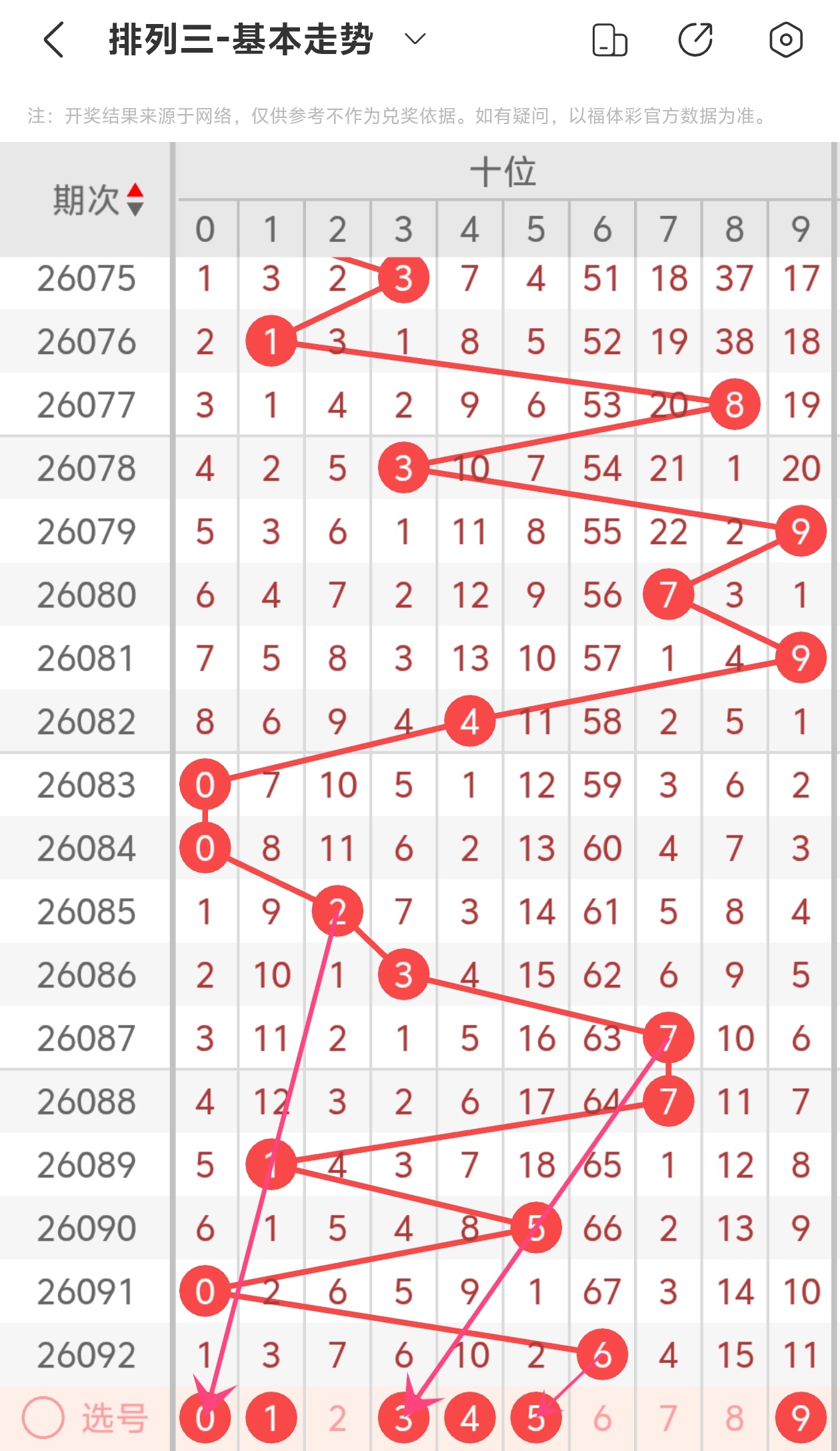 通过以上简单分析,我们看下26093期号码的定位分析: