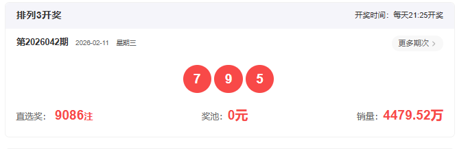 开奖号码:795