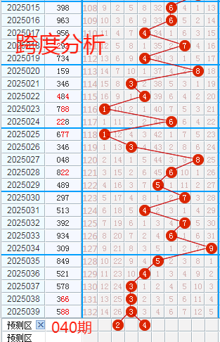 近五期三个指标来看总体推荐二个跨度:2-4跨!