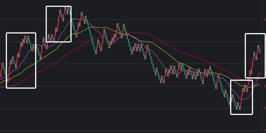 可以看到一些规律,在白框中,如果一致,那么接下来这些跨度也会出。