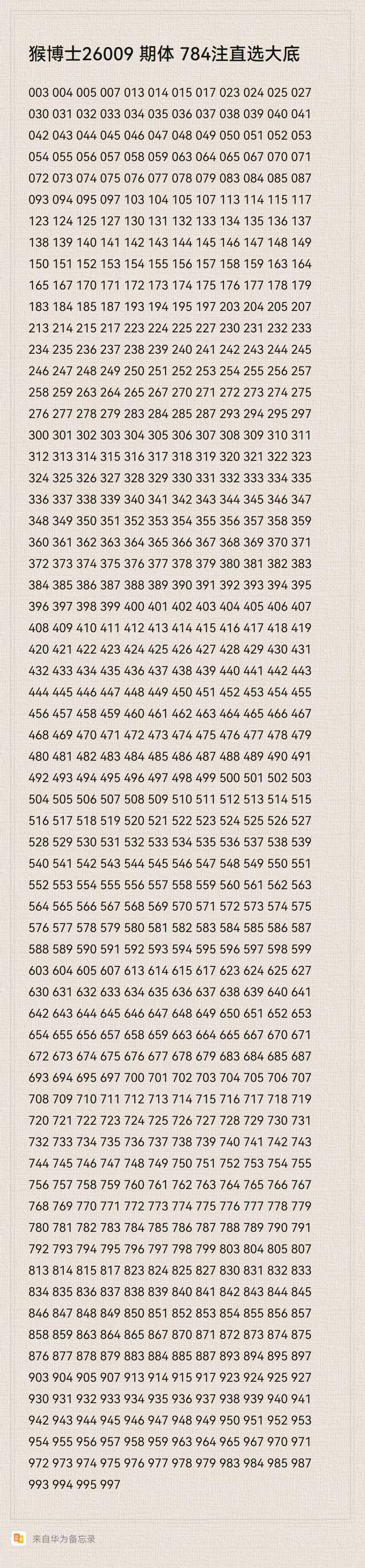 猴博士26009期排列三784注直选大底:(可以当母底用,然后进行缩水)