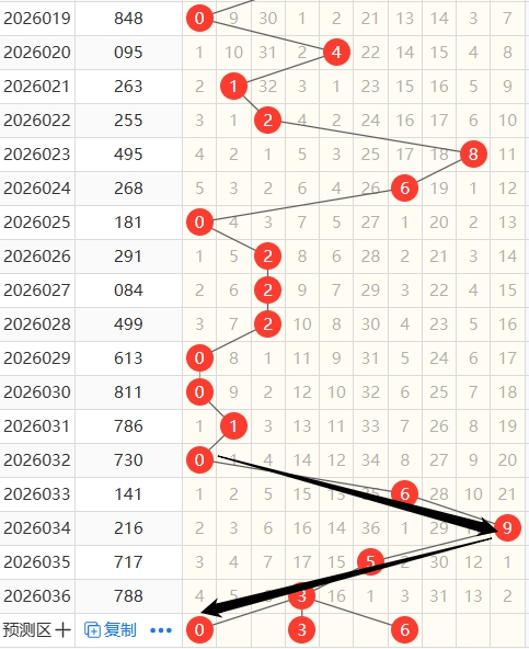 上期跨度为1,近5期跨度开出情况:第26032期开出7,属于奇数,1路号码,火属性;第26033期开出3,属于奇数,0路号码,木属性;第26034期开出5,属于奇数,2路号码,土属性;第26035期开出6,属于偶数,0路号码,水属性;第26036期开出1,属于奇数,1路号码,水属性;