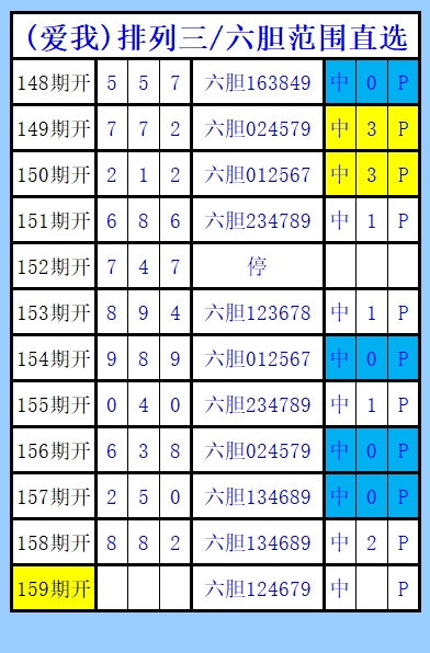 排列三第159期图文(爱我彩规),六胆直选推荐