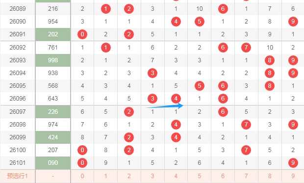 上图是体彩排列三开奖号码走势图分布图,我标注出来的蓝色箭头表示跨度四组合,到本期为止跨度4组合已经连续遗漏了4期上次是连续遗漏了7期,那么本期或者近期大家还是可以留意一下跨度四组合,跨度四组合有04 15 26 37 48 59一共6组。