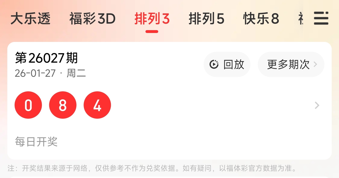 上期排列3开出084,和尾为2,跨度为8,奇偶比为0:3,大小比为1:2012路个数对比为1:1:1