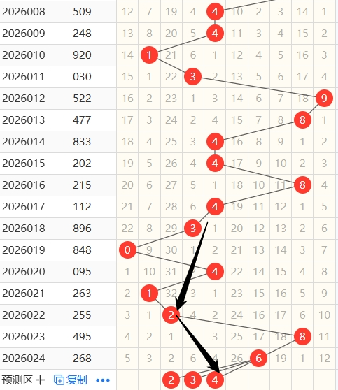 上期跨度为6,近5期跨度开出情况:第26019期开出4,属于偶数,1路号码,金属性;第26021期开出4,属于偶数,1路号码,金属性;第26022期开出3,属于奇数,0路号码,木属性;第26023期开出5,属于奇数,2路号码,土属性;第26024期开出6,属于偶数,0路号码,水属性;