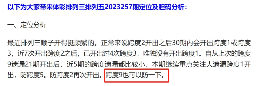 以下为大家带来体彩排列三排列五2023258期定位及胆码分析: